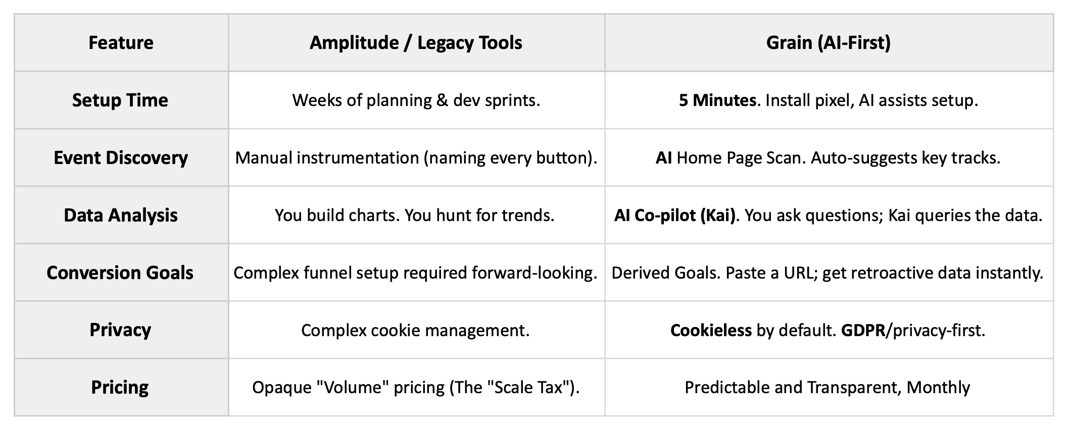 We built Grain because we wanted an analytics stack that respected our time as a team of builders and marketers. We didn't want another dashboard to configure; we wanted answers.